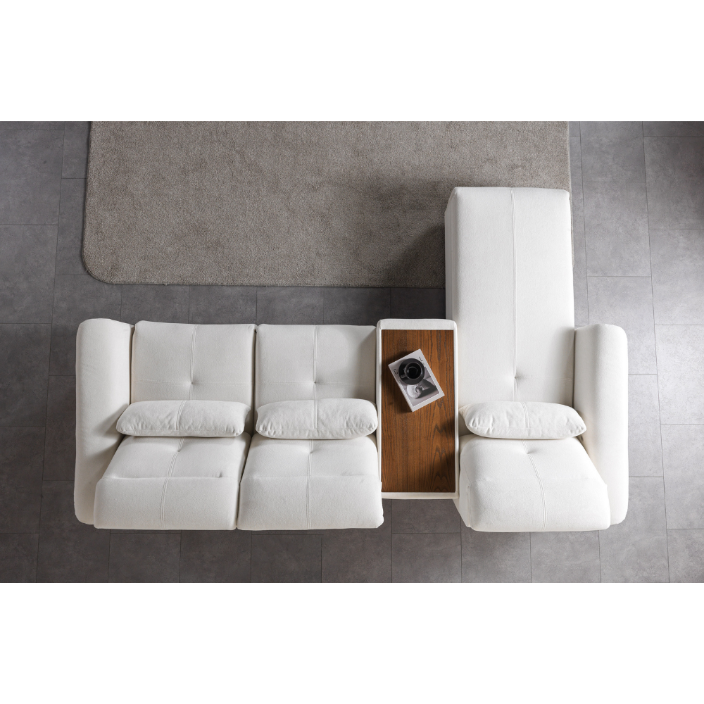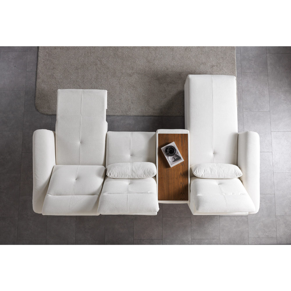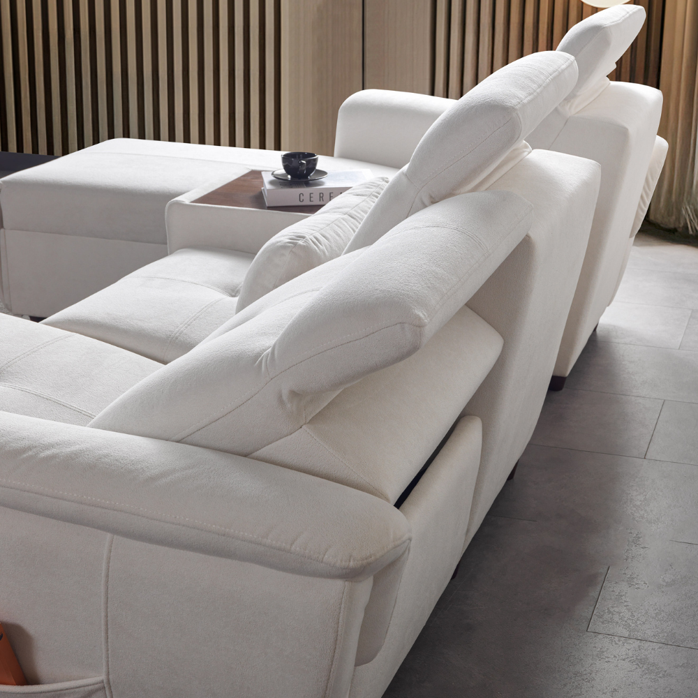 Luna Mini Köşe Koltuk, geniş ve konforlu oturumlarıyla evinizde premium bir sinema ve dinlenme deneyimi sunar. Motorlu recliner sistemleri ve kademeli manuel başlık ayarlarıyla kullanım kolaylığı sağlar. Uzatmalı dinlenme pufu ile tüm aileniz rahatça keyif alabilir.