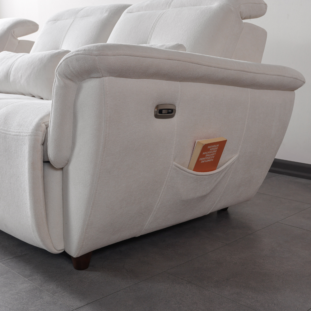 Luna Mini Köşe Koltuk, geniş ve konforlu yapısıyla evinizin her alanında şıklık ve rahatlık sağlar. Sağ ve sol oturumlar motor kontrollü olarak açılıp kapanabilir. Kademeli manuel başlıkları, sırt ve boyun desteği sağlar. Ekstra uzatmalı dinlenme pufu ile ailecek keyifli kullanım sunar.