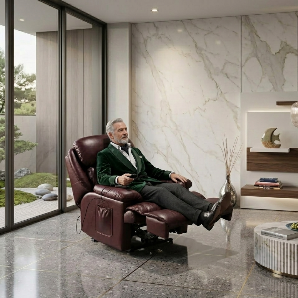 Konfor ve şıklığı bir arada sunan Motorlu Orijinal Deri Baba Koltuğu, kumandalı motorlu mekanizması ve 145° yatış açısı ile evinizin vazgeçilmez parçası olacak. Tv karşısında dinlenme, kitap okuma veya uyku modu için ideal bir çözüm sunar.
