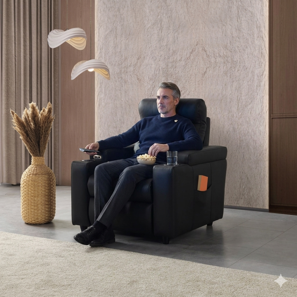 Zero Motorlu Sinema veOfis Koltuğu, evinizde ve ofisinizde sinema keyfini en üst seviyeye taşıyan özel bir tasarımdır. Tek tuşla açılıp kapanabilen motorlu mekanizması, bardaklık detayları ve ergonomik yapısıyla yalnızca bir koltuk değil, tam bir konfor deneyimi sunar. Müşteriye özel üretim imkânı ile ölçü ve renk seçeneklerini kişisel tercihinize göre belirleyebilirsiniz.